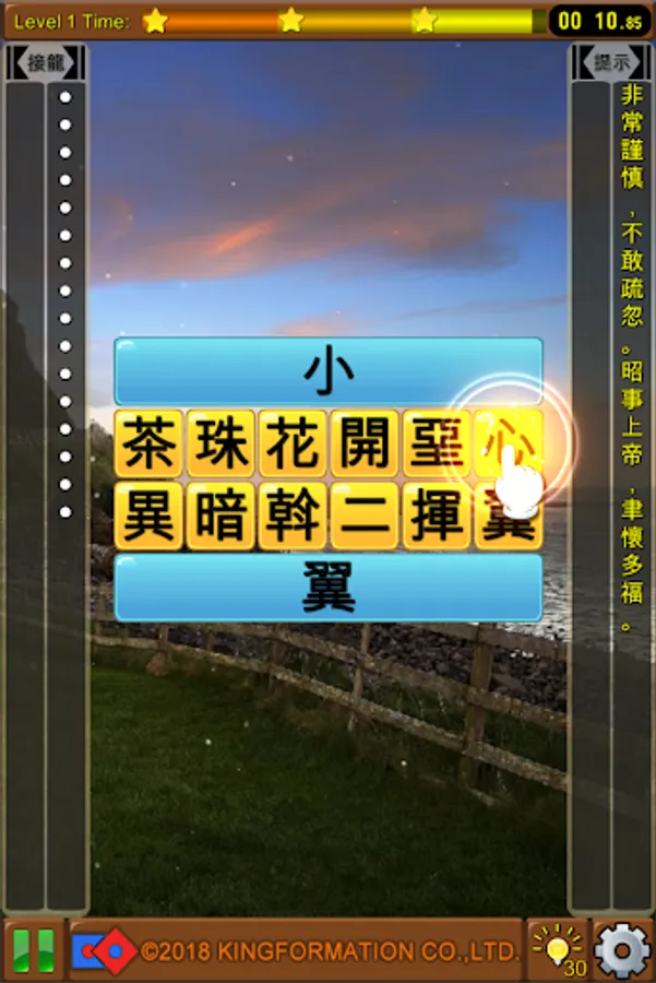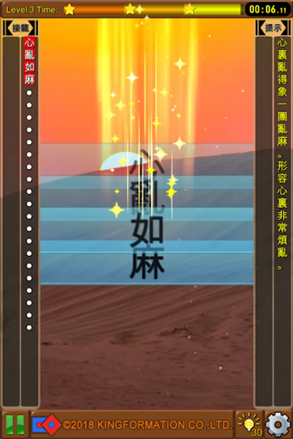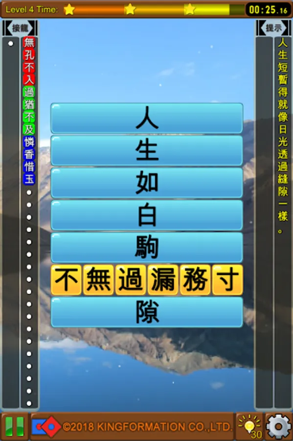 The game title is composed of four or more idioms or classic famous sentences. The player can complete the idiom and learn the game through the word selection game.