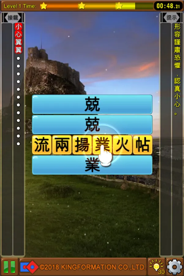 7. If the player can't answer the correct idiom word, you can choose the prompt button below to get the correct answer.