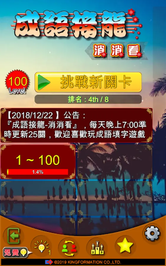 1.本遊戲依照成語難易度,共編排了1000個以上的關卡遊戲(每日更新25關)。