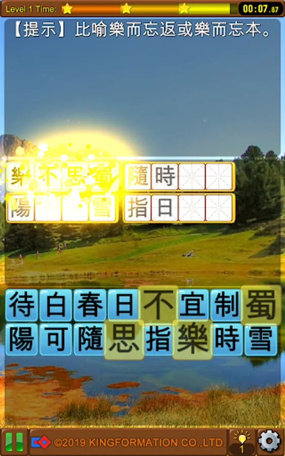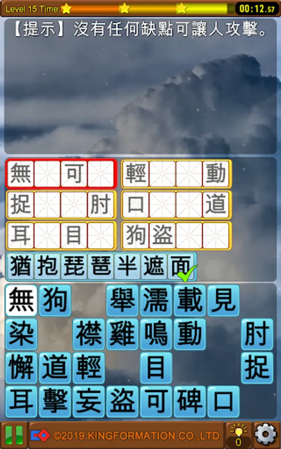 文字,完成此句成語。把下方待選字盤的文字全部消除即可過關。