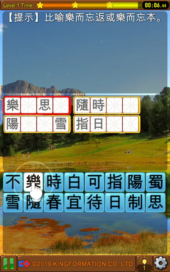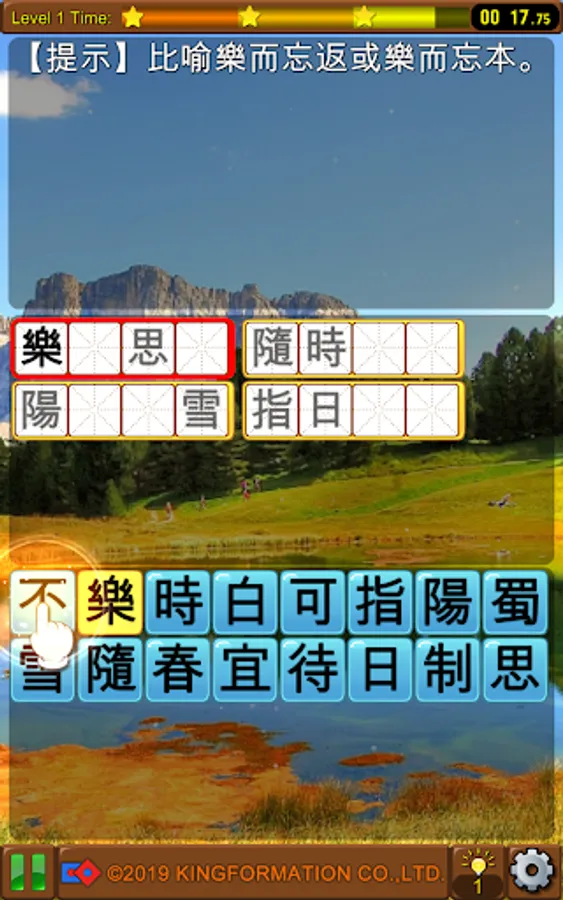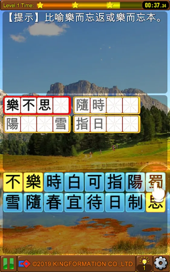 3.選擇每句成語,即會朗誦成語提示,遊戲者可以經由提示來挑選正確成句中的單字。