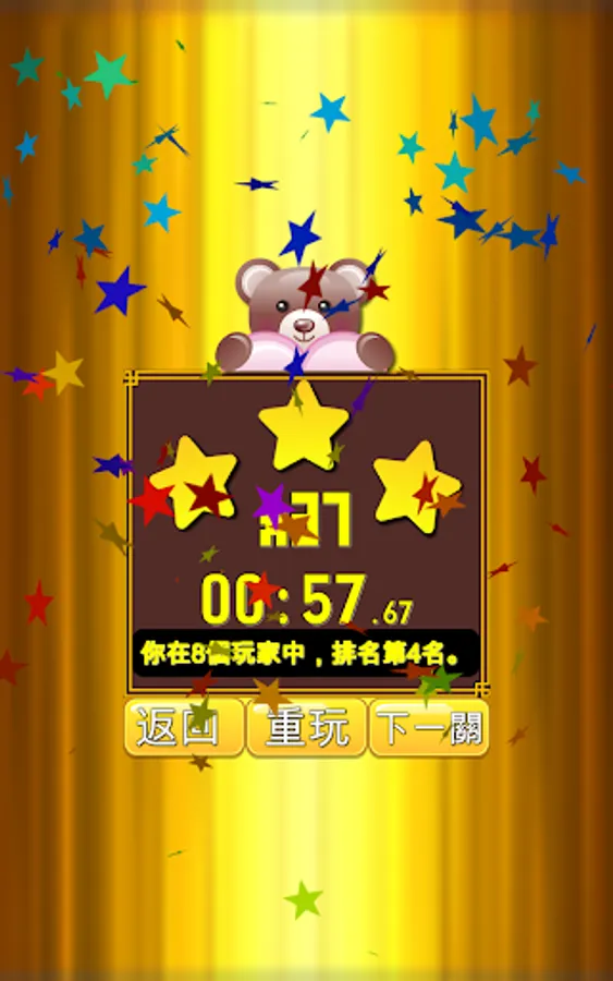 6.過關時,依照玩家的答題速度給予零~三個星的獎勵。