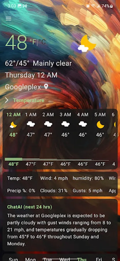 But that's not all! WeatherAI also features a dynamic color theme that changes with your phone's color theme. Our app is designed to seamlessly integrate with your phone's design, providing you with a personalized experience like no other.