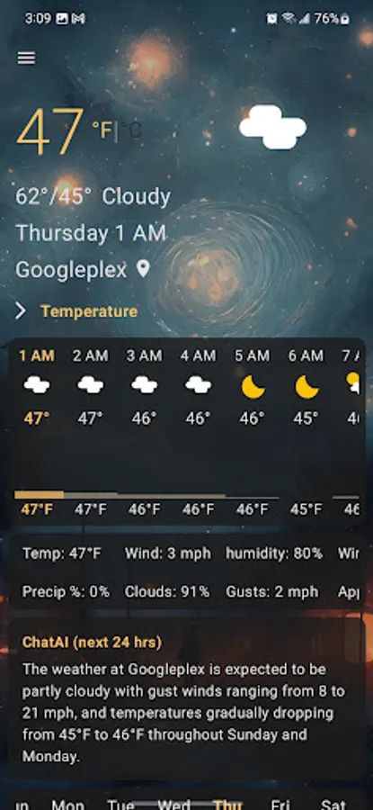 Planning a trip or just want to stay ahead of the weather? WeatherAI has got you covered! Our app displays a comprehensive 7-day weather report with hourly data for each day. From wind speed to precipitation probability and humidity, WeatherAI provides you with all the information you need to stay informed about the weather conditions.
