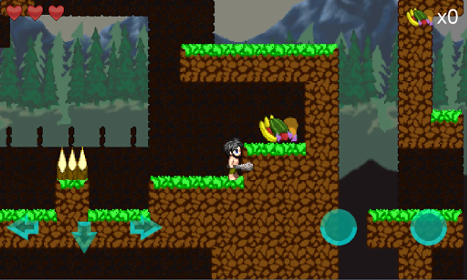 What you need to do is, you have to help the Caveman to find and collect all the food that was hidden in the jungle, because he had run out of food supplies. Food is used for the preparation of the upcoming winter. You have to help him overcome all the obstacles in the jungle and defeat enemies that block the way. Hunting for food is full of surprises. Just follow your instincts. Do not give up if you fall. In addition you will also need to help the Caveman to fight all the enemies especially snake, bats and spiders in the jungle who are willing to do anything to stop you from looking for all meals. Beware of traps which have inland forests because it can hurt him. The final shot, you have to help the caveman beat the boss (gorilla) that will prevent him to bring back food that was collected.