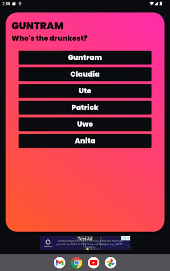 The second category called "Aperitif" brings some harmless but yet interesting questions to the table.