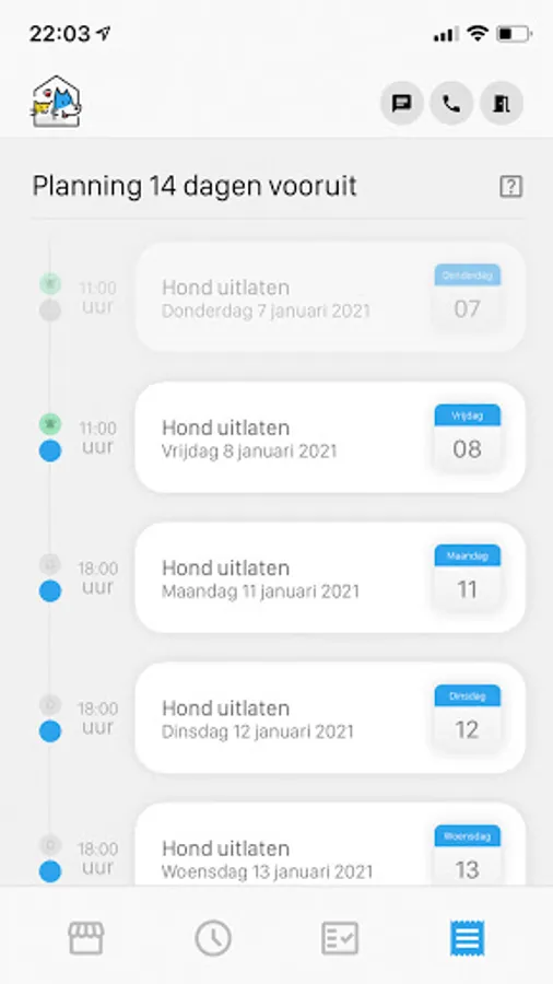 Nice and transparent ... Customers of Kingma Dieren can view their own planning as it is in our agenda. Exhaust services, day care, but also deliveries of Food & Snacks are included! Has something been canceled? Then you will also see this reflected in your agenda!