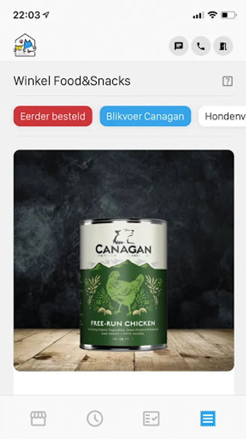 Via the app you can order food and snacks directly and schedule them for delivery. Customers of Kingma Dieren always pay on account! We are a dealer of Canagan and Vitalin, two British top brands. We also have a wide range of natural dog and cat snacks!
