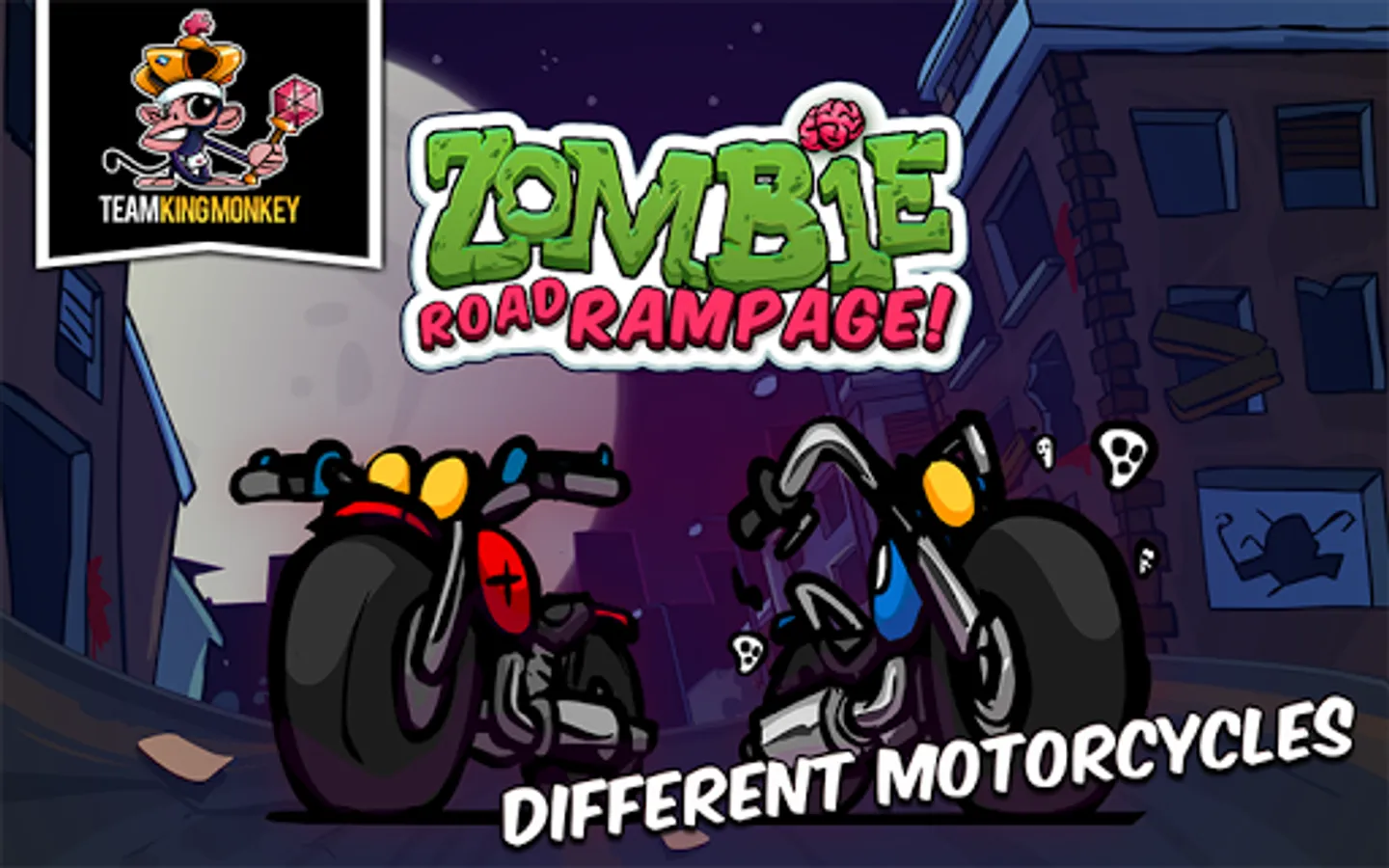 Don't let the Zombies eat your brain! Collect coins and unlock new and faster motorcycles to move faster between obstacles.