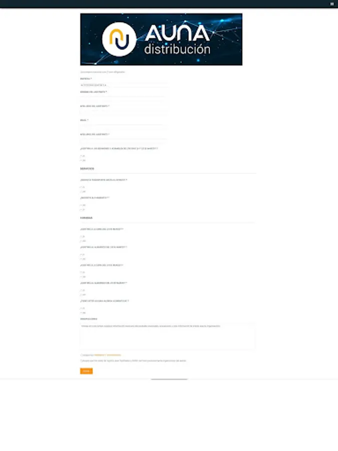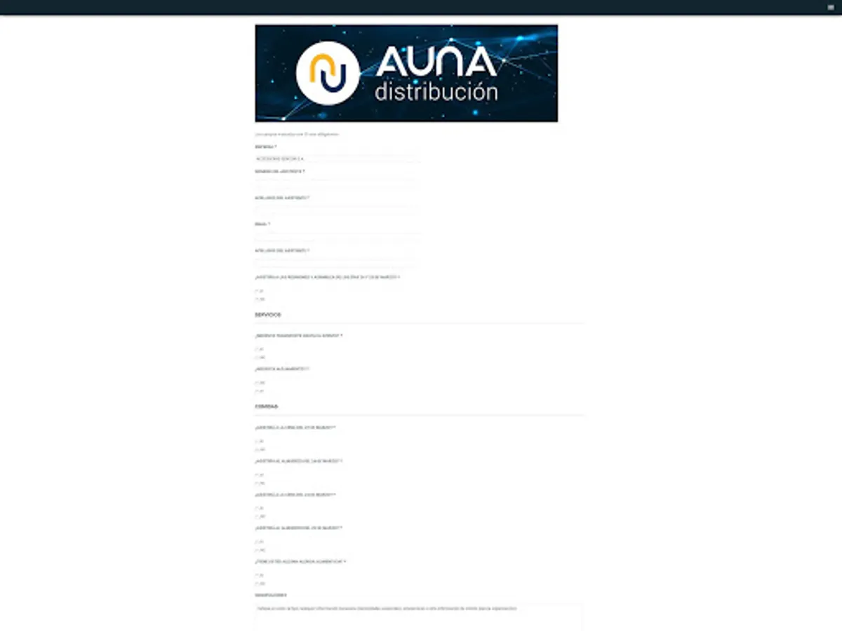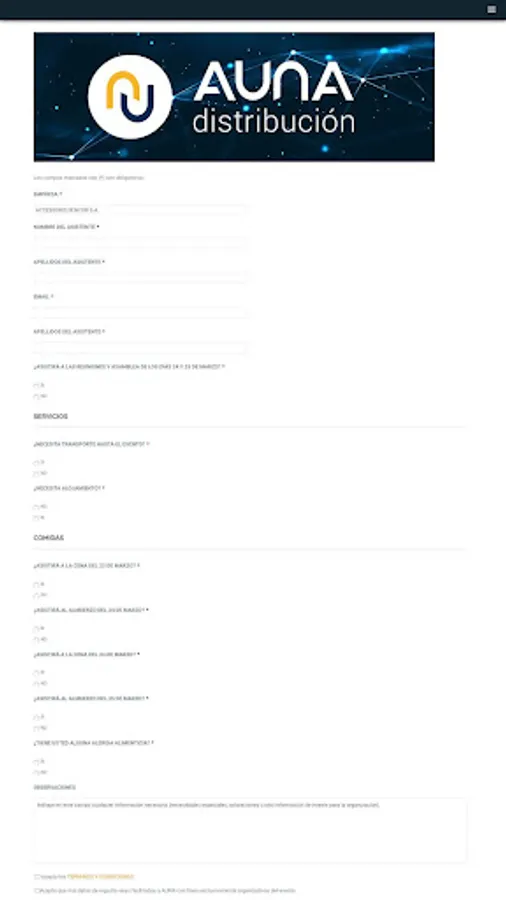Application developed by World Business Travel to facilitate AUNA the registration of assistance of its partners to the events of the company and the request for services to the agency.