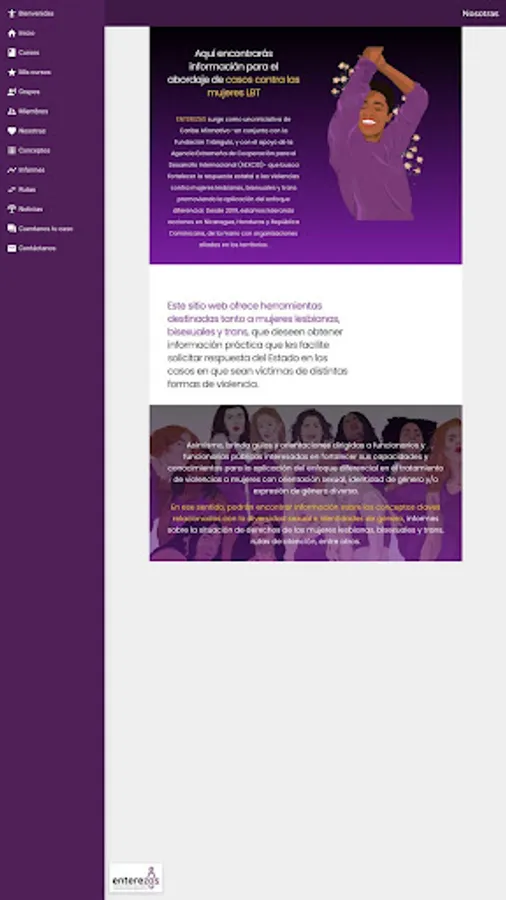 ENTEREZAS arises as an initiative of Caribe Affirmativo - in conjunction with the Triángulo Foundation, and with the support of the Extremadura Agency for International Development Cooperation (AEXCID) - that seeks to strengthen the state response to violence against lesbian, bisexual and trans women promoting the application of the differential approach. Since 2019, we are leading actions in Nicaragua, Honduras and the Dominican Republic, hand in hand with allied organizations in the territories. This App offers tools aimed at both lesbian, bisexual and trans women who wish to obtain practical information that makes it easier for them to request a response from the State in cases where they are victims of different forms of violence.