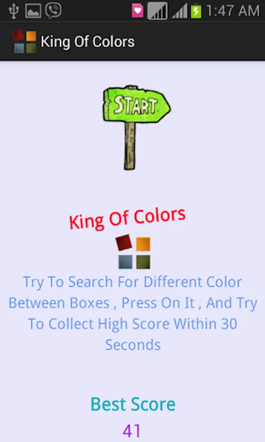 Try to find different colors within 30 seconds , and collect points to get highest score