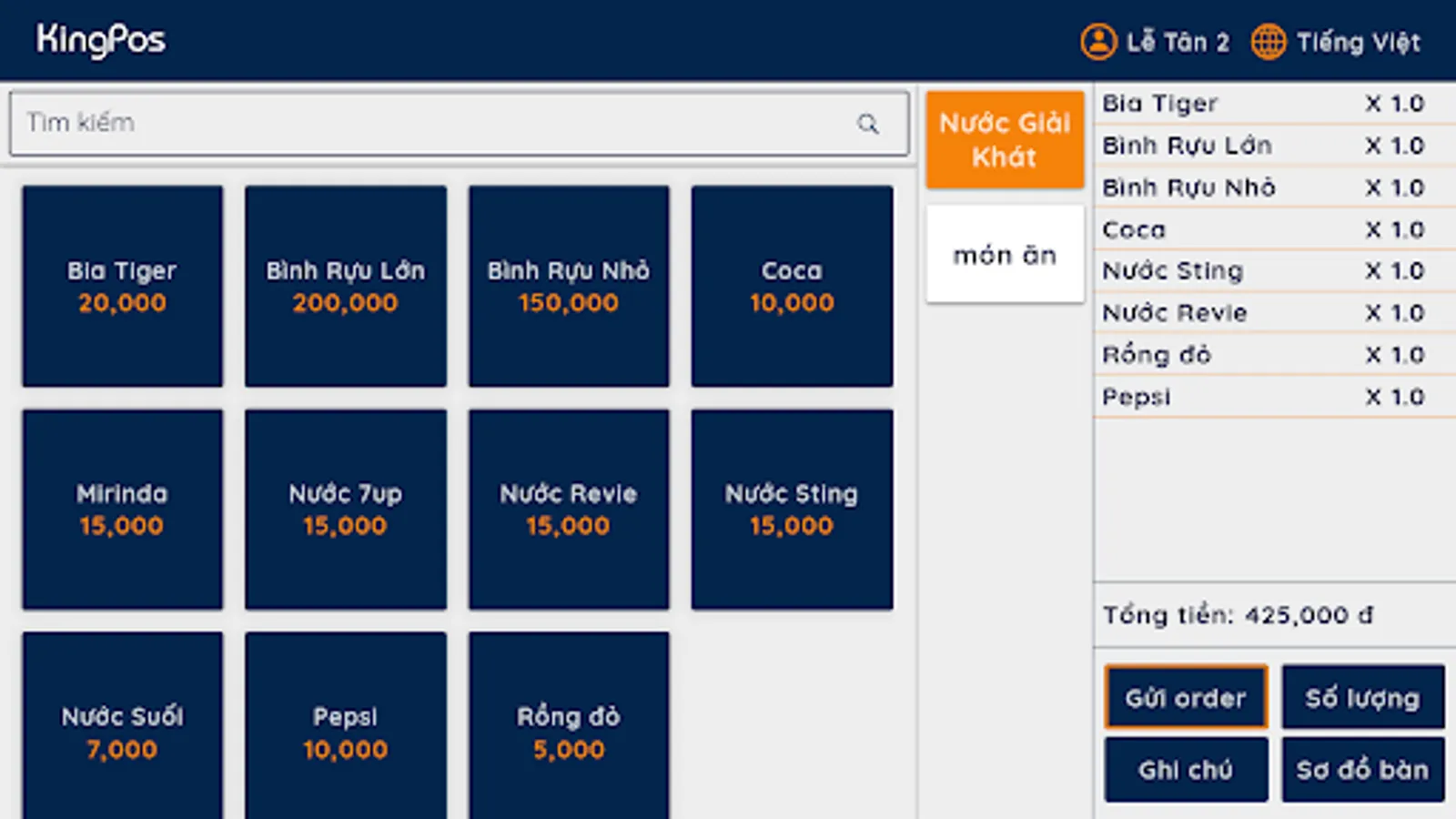 KingPos helps you sell goods at any location in stores, restaurants, hotels, karaoke, billiards. Helps to save equipment investment and labor costs.