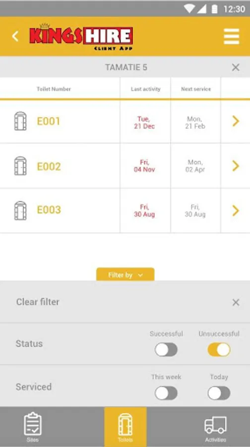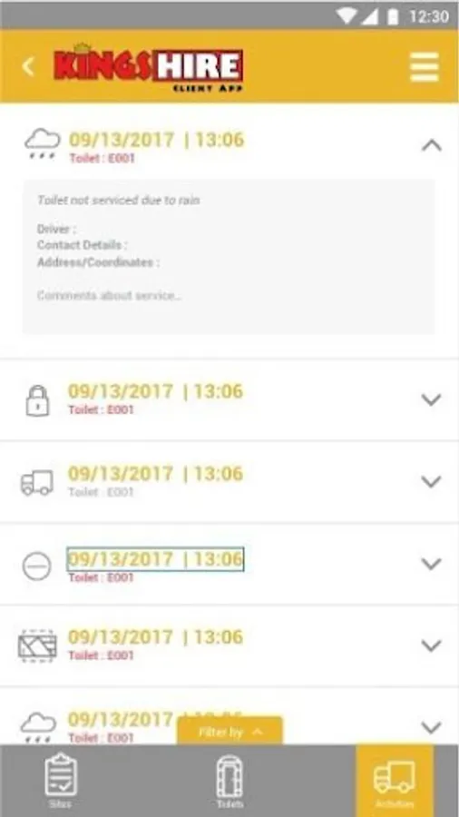 This application allows Kings Hire to notify our clients about the services completed on the toilets they are hiring. Our clients can now know when a toilet was services and what the condition of this service was.