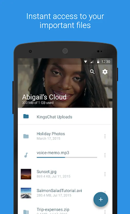 KingsCloud is the new home for all your photos, docs, videos and other files! Files you keep in KingsCloud are safely stored in the cloud and can be accessed from all your devices. Also, it's an intuitively simple way to view all media content that you have shared via KingsChat.