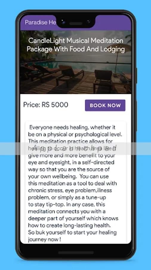 Paradise Healing Resort offer you the best accommodation with relaxation of your mind through Meditation & Health activity.