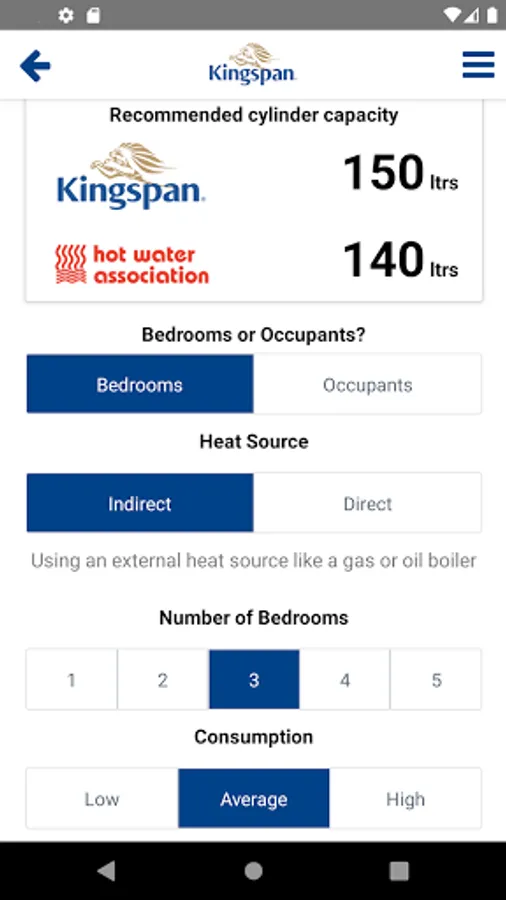 CYLINDER SIZING tool will help you choose the right cylinder capacity based on the number of bedrooms or occupants in your household, your heat source and hot water consumption.