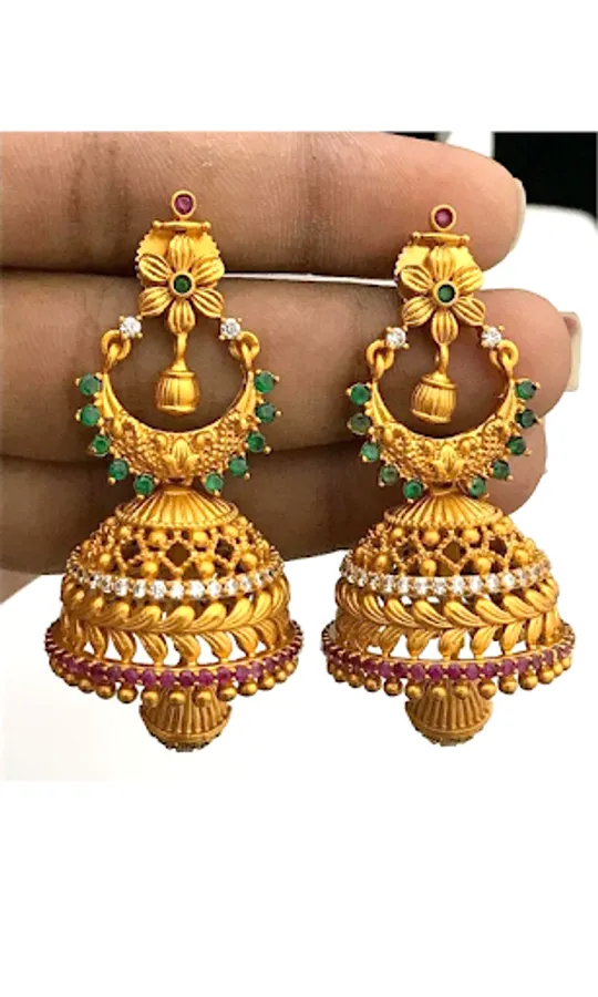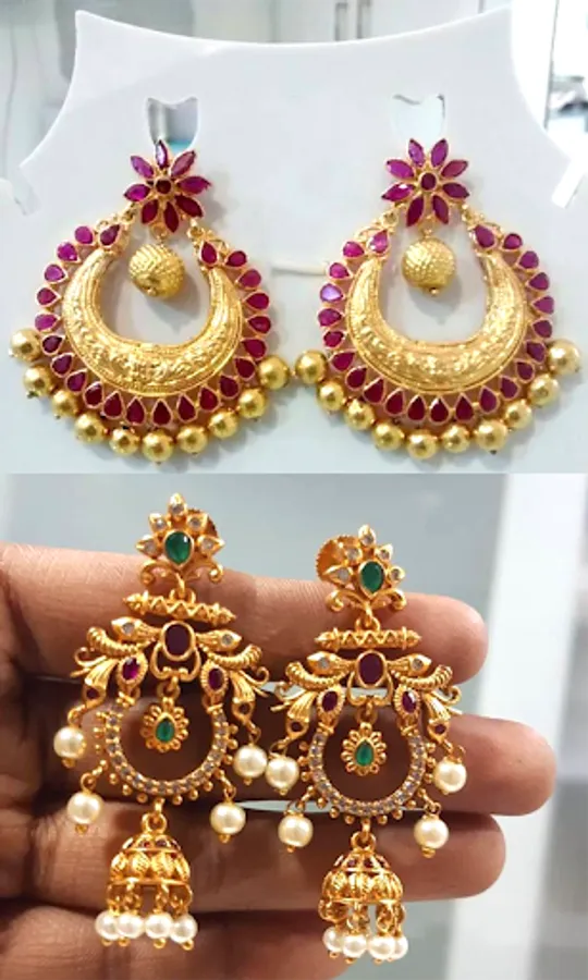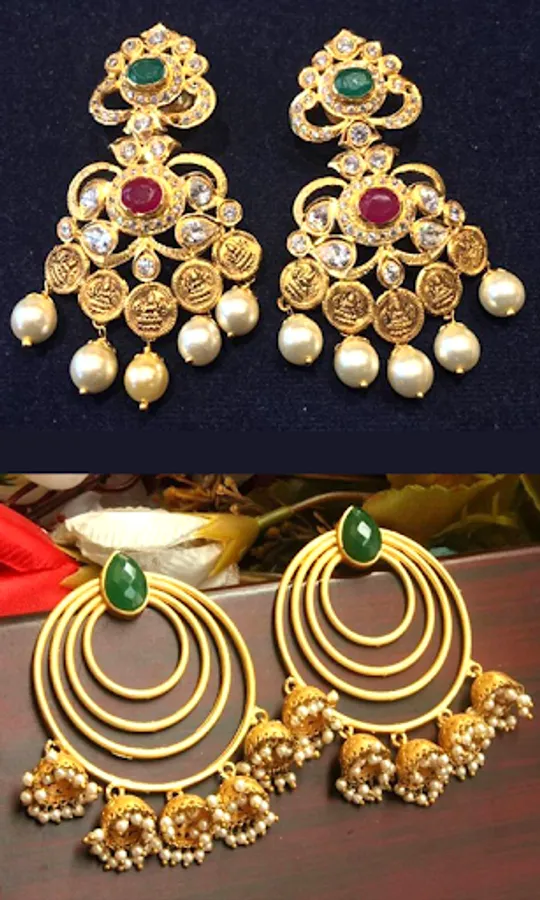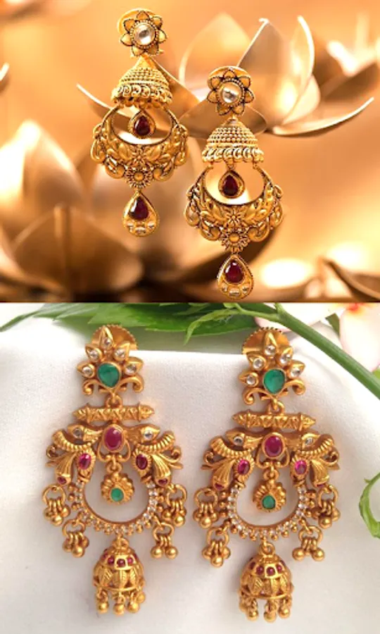 Gold earring designs app is the which has the best collection of earrings of gold. We have collected some beautiful designs of earrings for women. An earring is a piece of jewellery which will be attached to the ear by piercing or clipping. Hope you love all the designs of earrings.