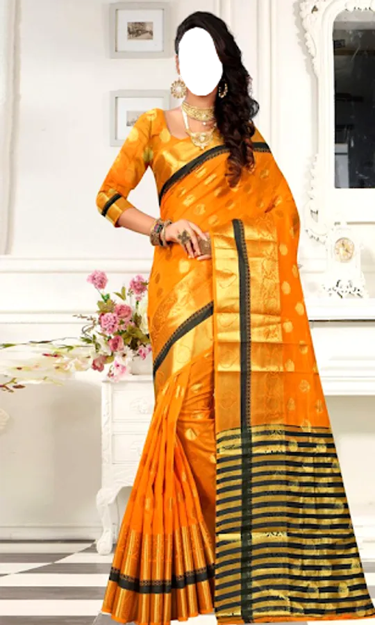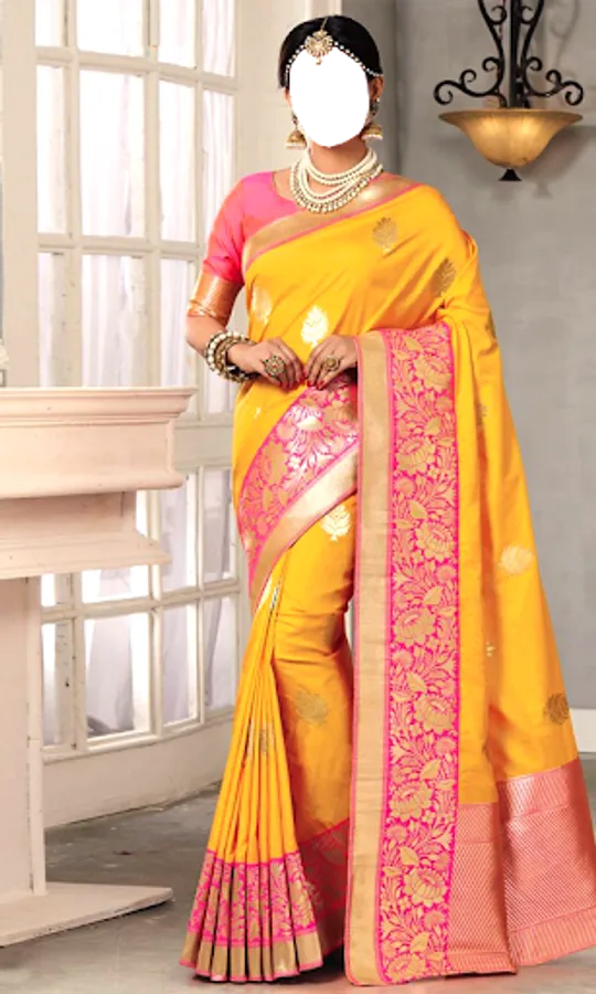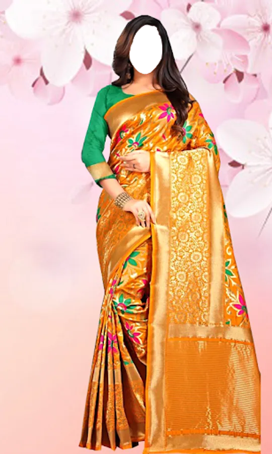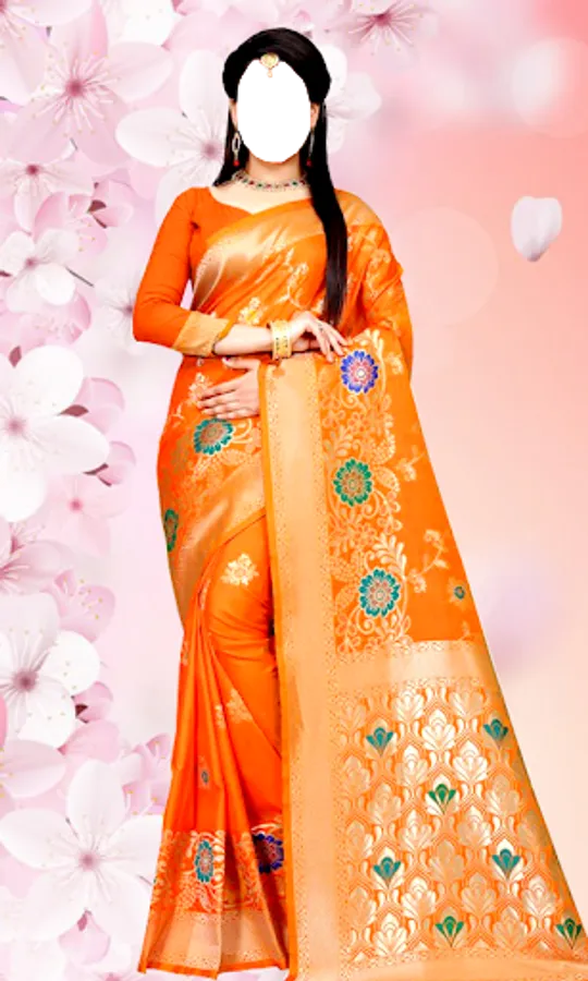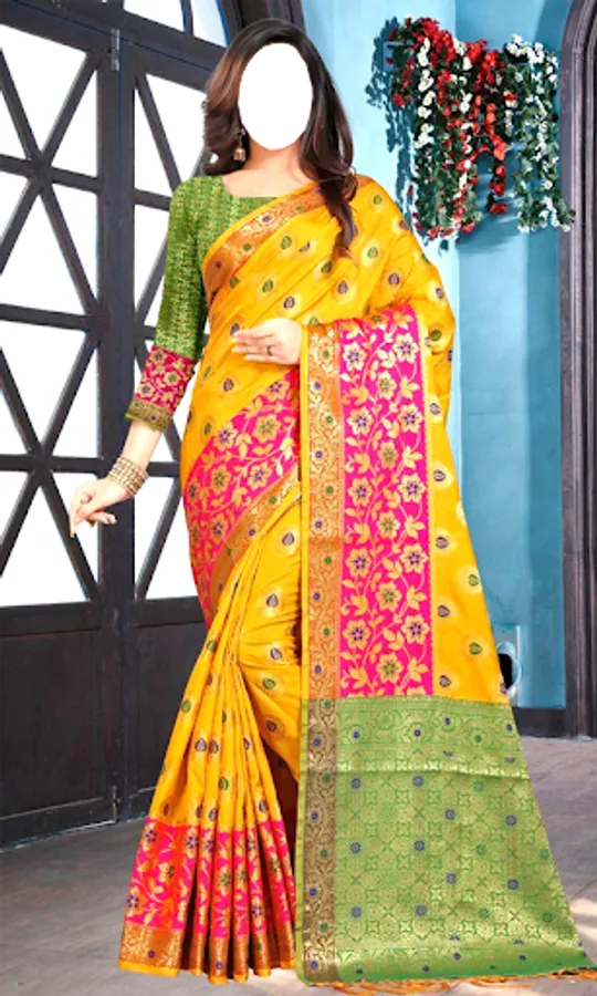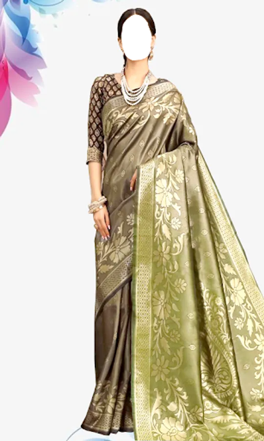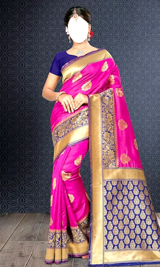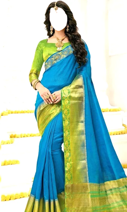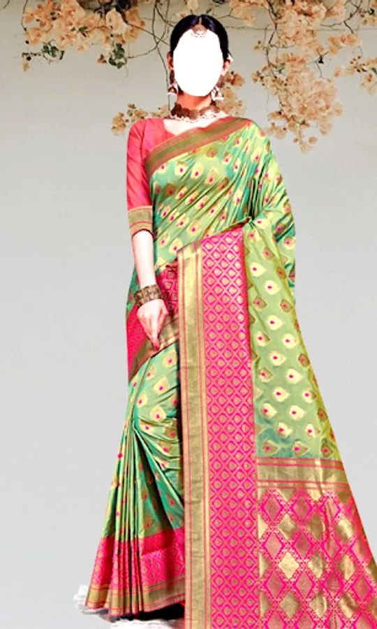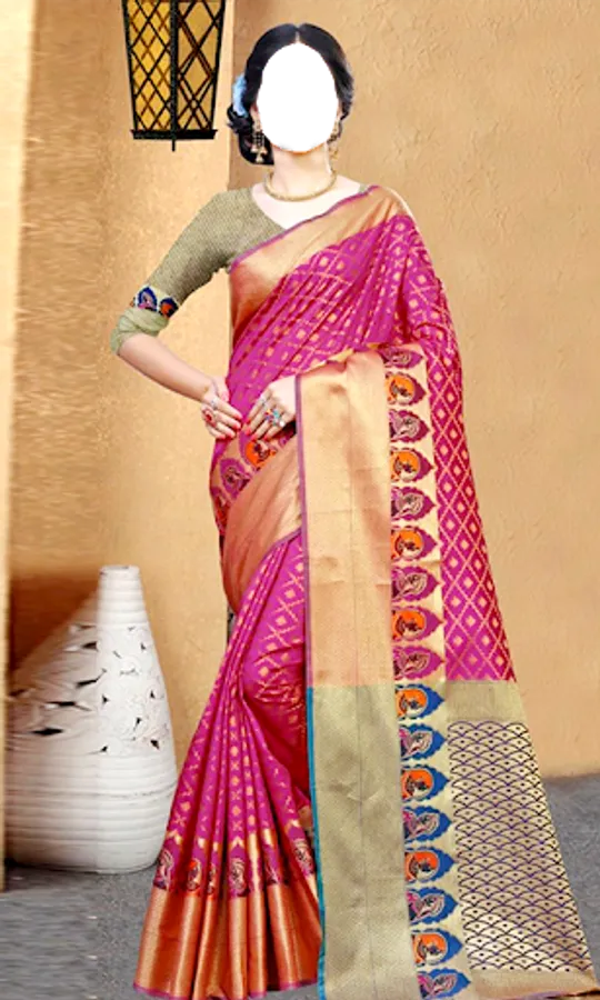 All you need is to download this application for free from play store, just open the app, it just contains less Mb of size so you no need to worry about space in your mobile, just you will find lots of pattu saree suits which are very gorgeous and suits you, just select a pic of your from gallery and set it in any desired suit, you can zoom in, and zoom out to set it in any suit. You also set a text to your images with different font and colors, this app is free and easy to use, you can also share your images to your loved ones.