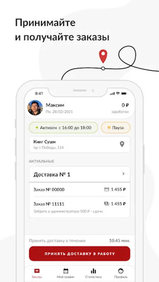 KingSushi.Couriers is an application for working and part-time work as a foot courier and a courier by car in the KingSushi company.