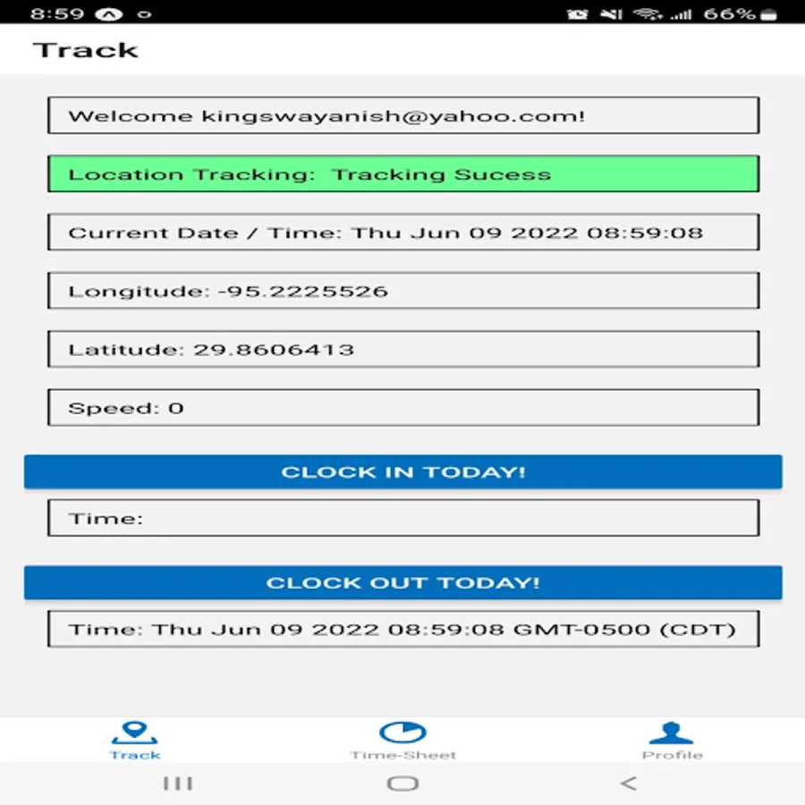 This application will allow YC company to track their employee location and allow employee to add their clock-in and clock-out.