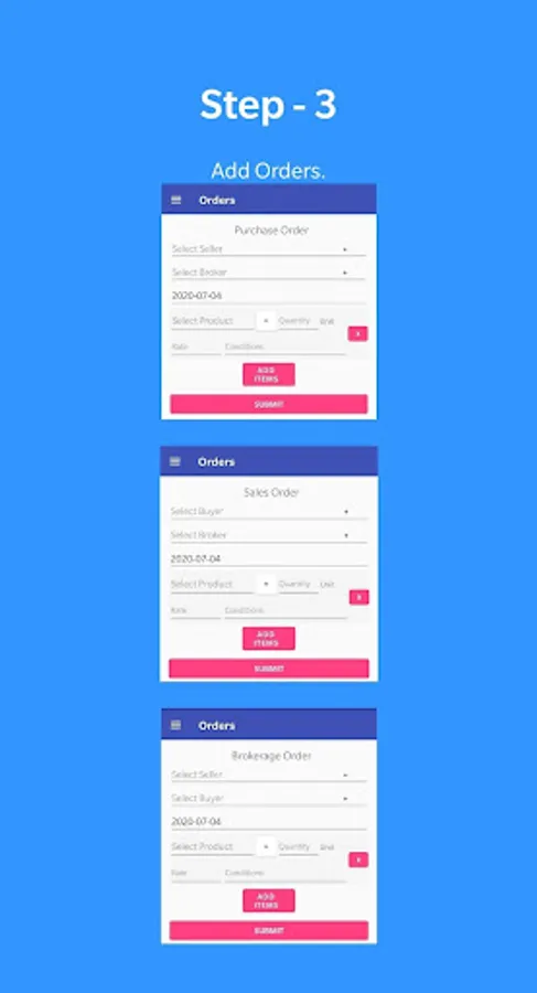 7. Profile specific orders i.e. Trader (Purchase/Sales order) or Broker (Brokerage order) or both.