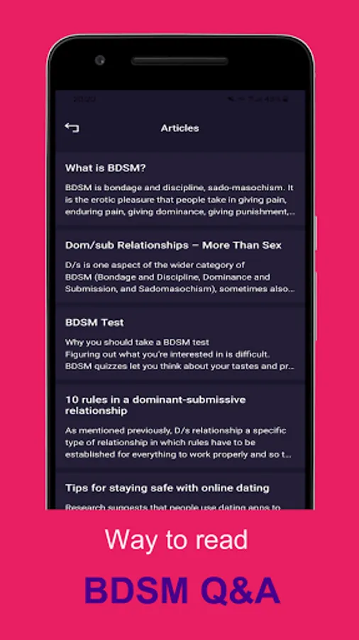 --Try new things: Meet, chat, and share experiences with other people who are into dominant, submissive, bondage, role playing and more.
