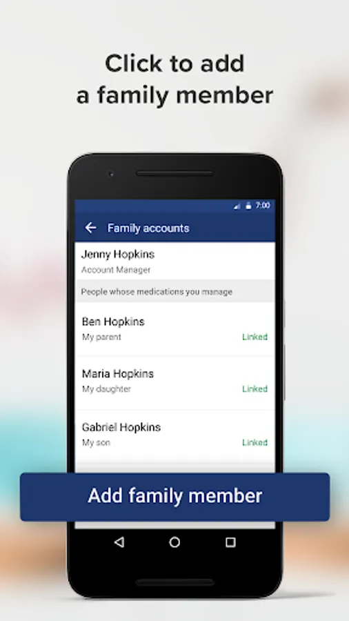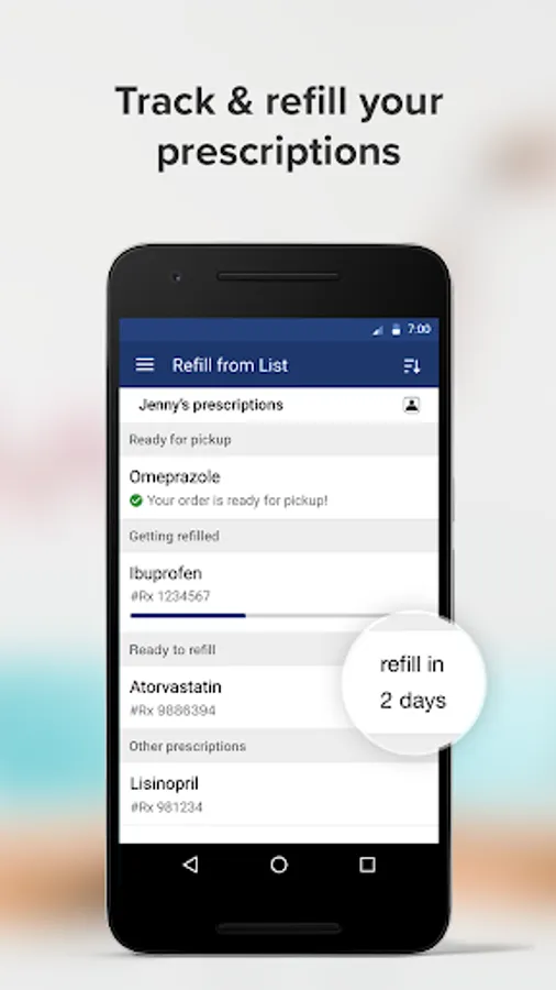 It's easier than ever to refill your and your family's prescriptions. You can view all your prescriptions in a list (including prescription numbers, dosage, quantities, refills remaining, and expiration dates). You can also just scan the label on your prescription to order a refill.
