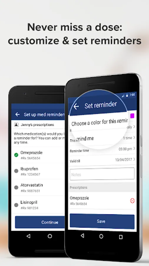You can get reminders when your prescriptions are ready to be refilled and get notifications when they are ready to be picked up. You can even send yourself reminders to take your medications!