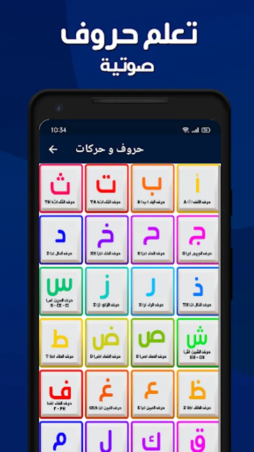 The application of teaching the Arabic language without the net enables you to teach the Arabic alphabet, as well as teach the letters, teach the Arabic letters without the net, with sound.