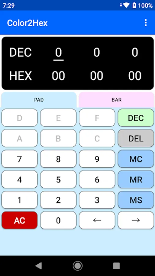 - Tap the DEC/HEX key to switch between decimal and hexadecimal.
