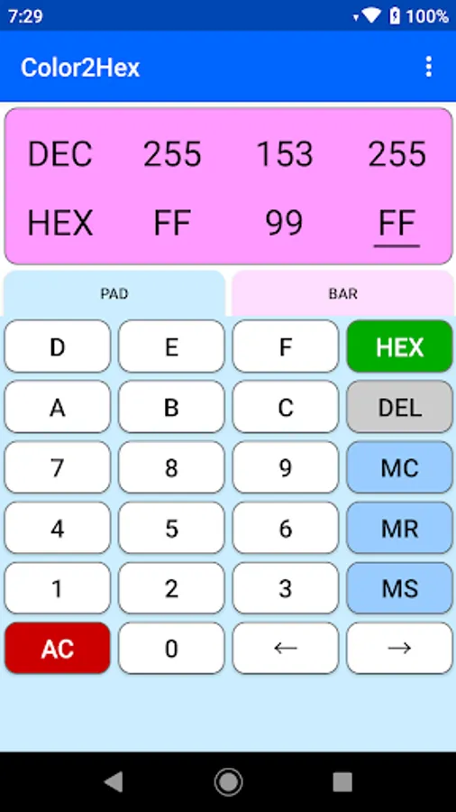 "Color2Hex" is color code conversion tool. (decimal <-> hexadecimal)