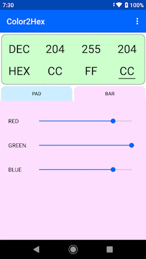- Generate color code with red, green and blue bars.