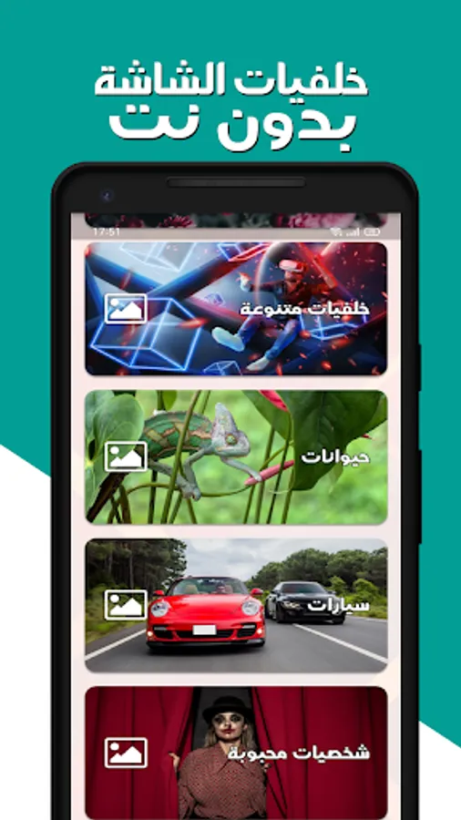 The application includes the best wallpapers for the screen (hearts; landscapes; cute girls, roses, God, Islamic, sea, blurry, light, cars, clock, real madrid, love, live, animals)
