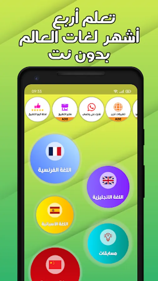 We offer you the best application for learning languages without the Internet, which includes a variety of activities, including lessons and games, written and audio, to learn English, French, Spanish and Chinese easily.