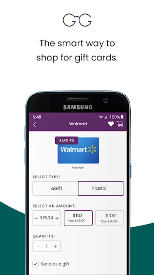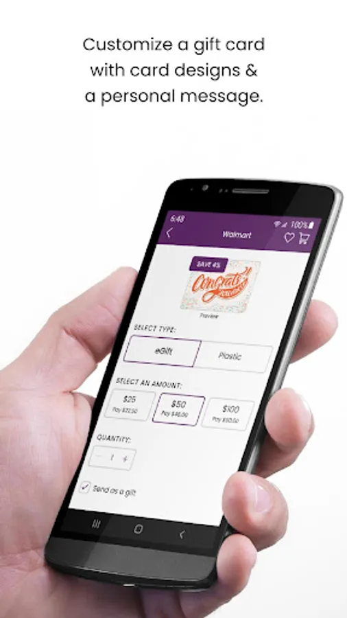 Our free app is loaded with features that will easily direct you to the gift you're looking for. Shop for traditional plastic gift cards or get an eGift card you can download for immediate use. In addition to a wide range of gift card types, customize a gift card with card designs and a personal message.