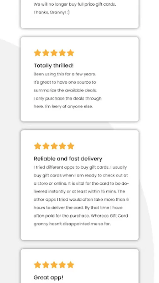 What are you waiting for? Download the Gift Card Granny app. It’s the smart and safe way to shop for gift cards.