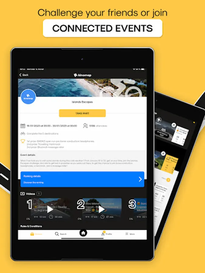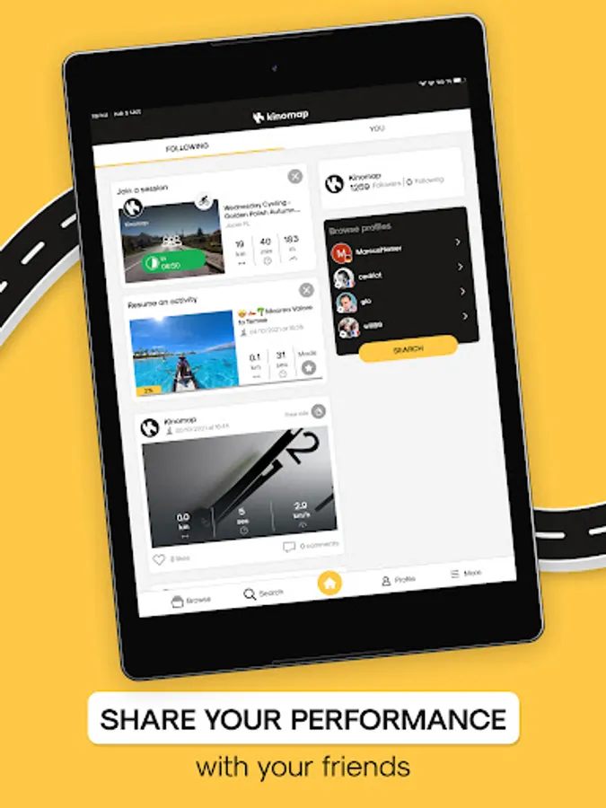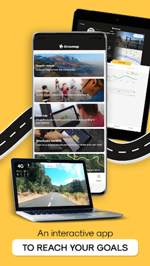 - Synchronize your Kinomap activities with our app partners like Strava or adidas Running.