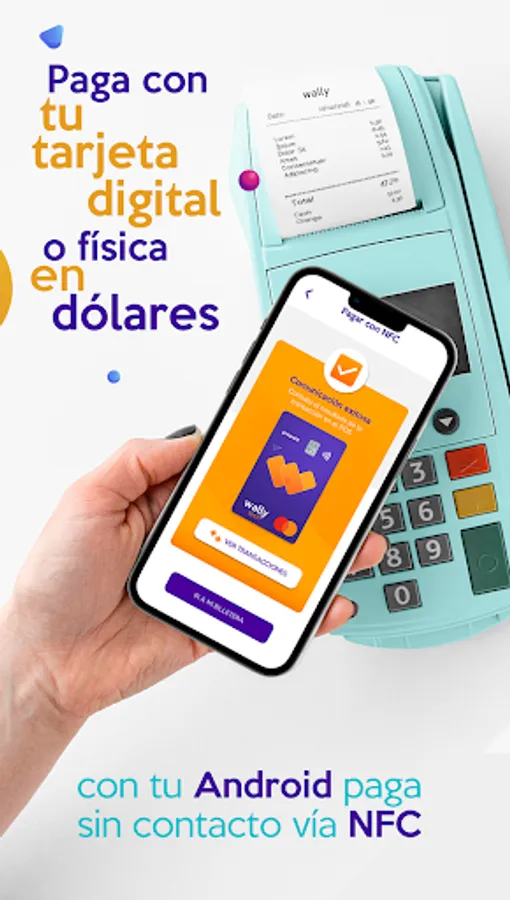wally, is a digital wallet with which you can easily manage your money 100% from your cell phone, without having a bank account, without lines and without heavy paperwork. Regardless of where you are in the world, top up, send, receive and pay in dollars, using your digital or physical Mastercard® wally card, with which you can buy online and in stores.