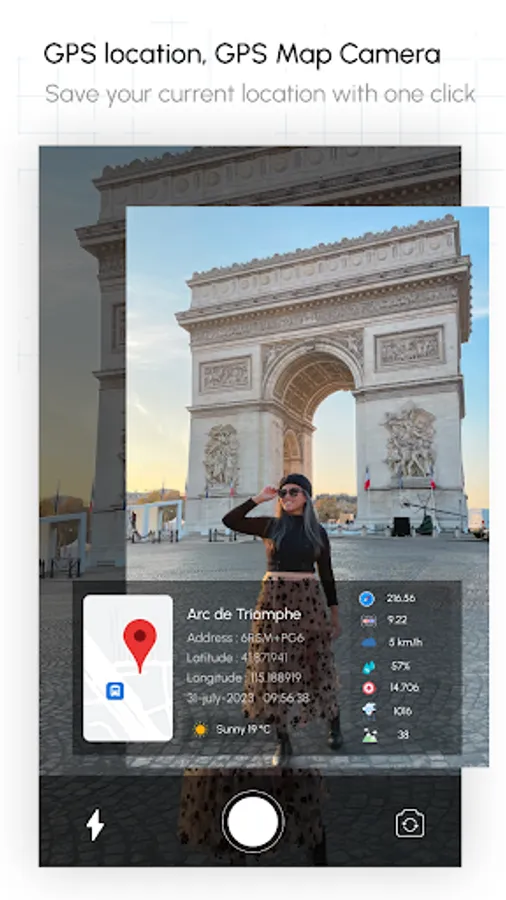 In this GPS camera location, you can click photo by adding geotag location. In this you can turn on/off the capturing sound, set the timer and add mirror effect, as well as turn on the flashlight when taking photos in a dark place.