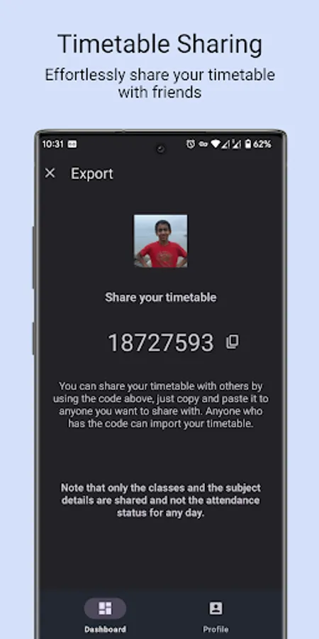 * Share your timetable with friends and save them the hassle of manually scheduling their classes
