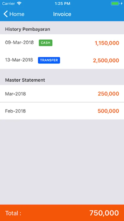 This application is to facilitate checking the list price, the amount of debt and the status of the delivery of goods