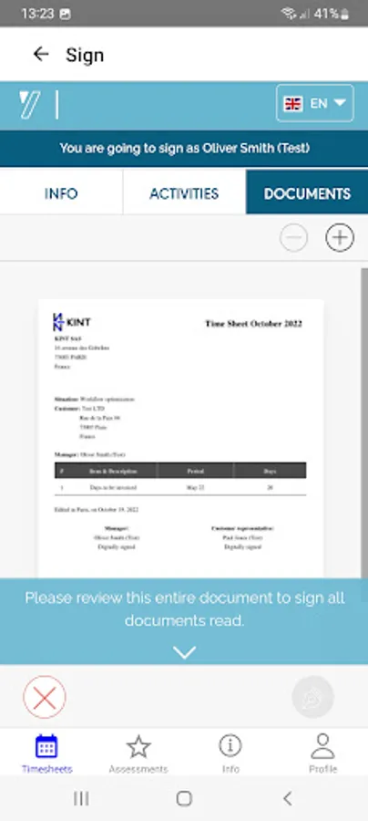 Create your situation manager profile and join the KINT database. Once your profile has been validated by our team, the KINT app allows you to intuitively manage your timesheets. Real-time tracking, as well as a shared electronic signature process between the manager and the client ensure document traceability and rapid signature. The invoicing process is then automatically launched once the timesheet has been validated by both parties. Easily increase your efficiency with the KINT app!