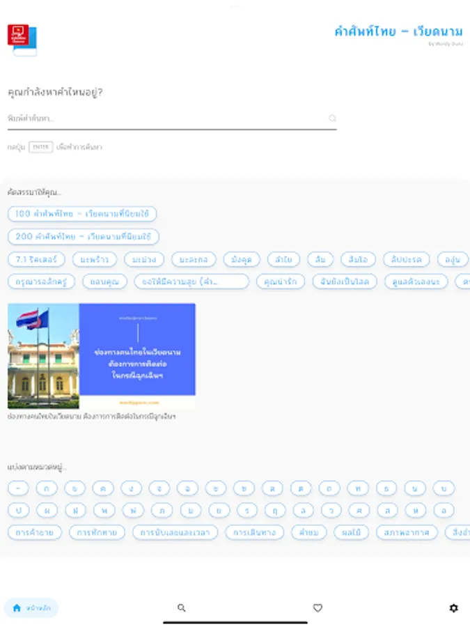 Vietnam is a neighboring country of Thailand. Also, we are going to turn ASEAN soon. Not to damage anything if we try to study Vietnamese preliminary together. The application includes a glossary Thailand - Vietnam (Foundation) comes into your hands.