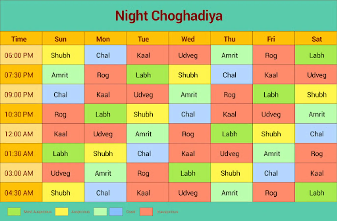 Choghadiya is helpful in checking the time (day or night) which is thought to be good and favorable and accordingly best to start an adventure, engagements, performing puja, and amid uncommon celebrations and so on.