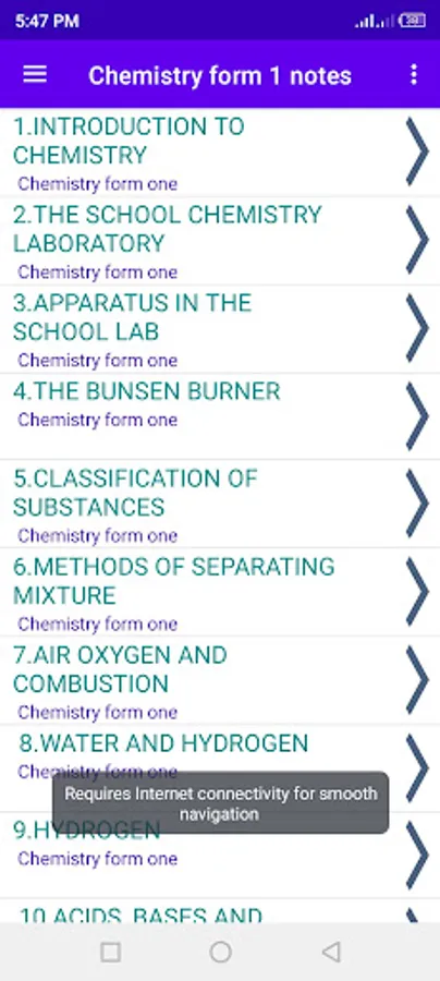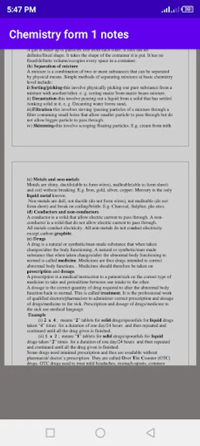 The Application features comprehensive, well explained chemistry notes ,form one syllabus from the following topics: