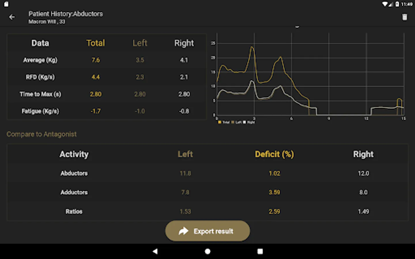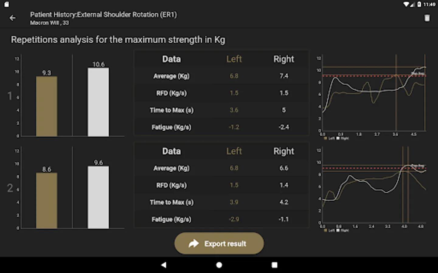 The App, together with the Muscle Controller devices, is measuring forces. The targeted exercises with real time biofeedback, the display of progress and the quantified measurements inspire confidence and motivation to the health professionals and their patients.