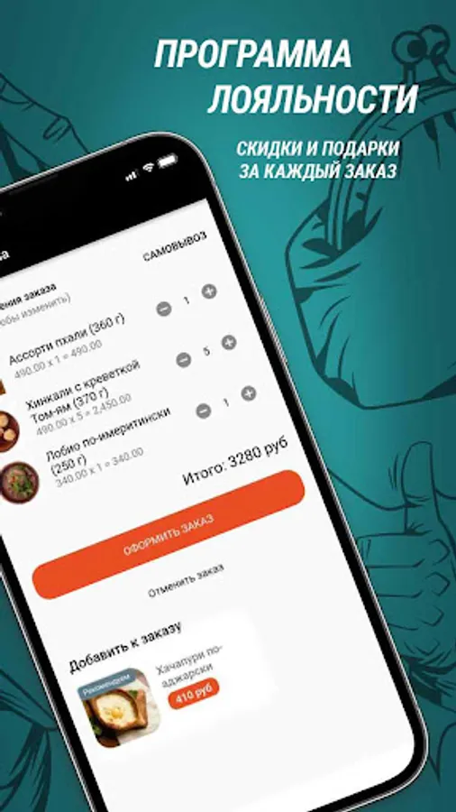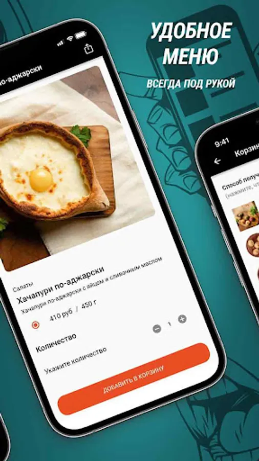 In our mobile application "KINZA" you can order the delivery of Georgian dishes to your home and office or place an order for pickup.