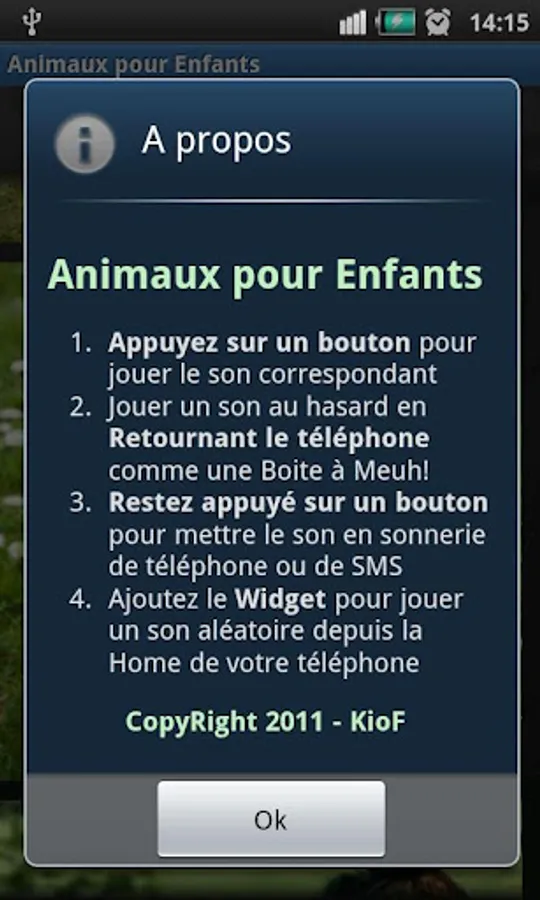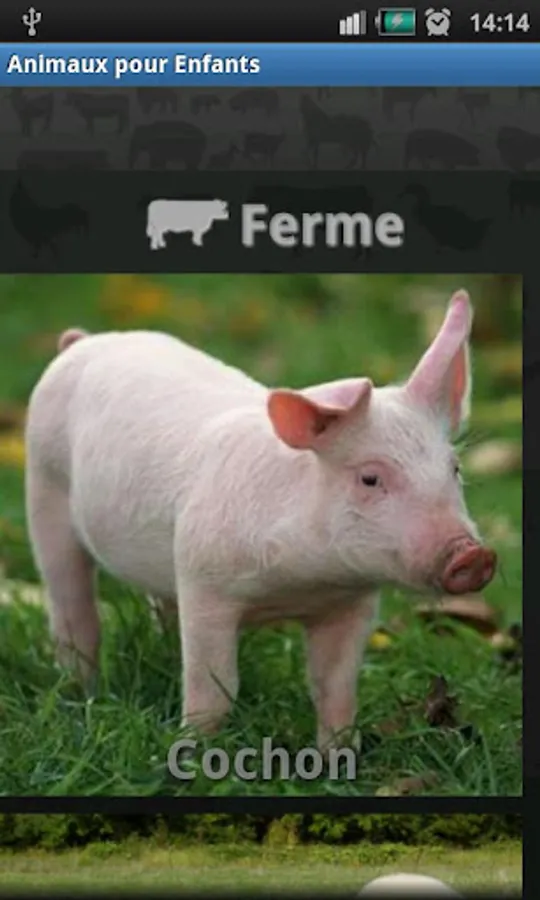 Discover the animals and learn through images, sounds and words. This application allows to discover animals through very beautiful pictures and great sounds.