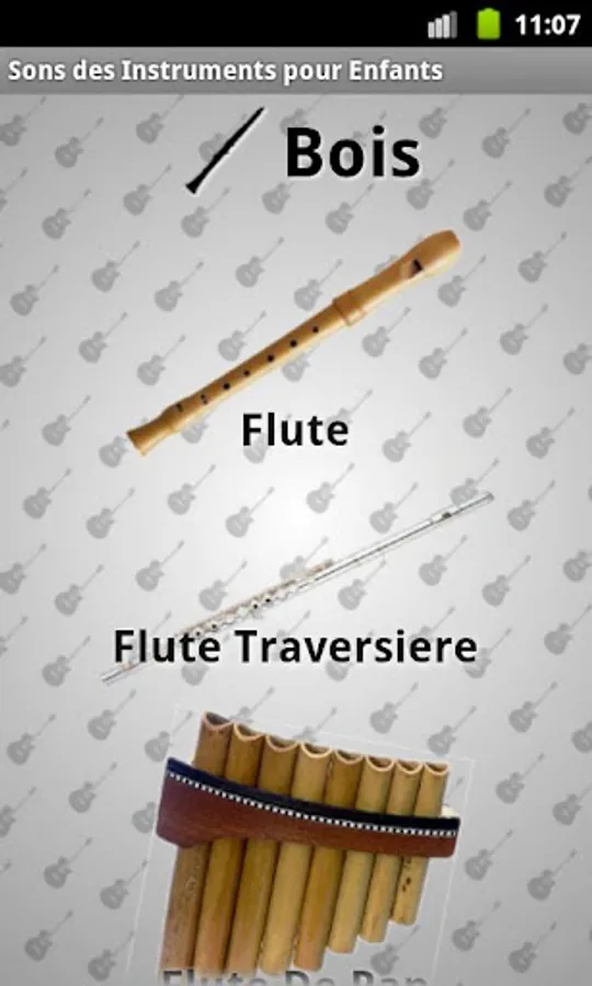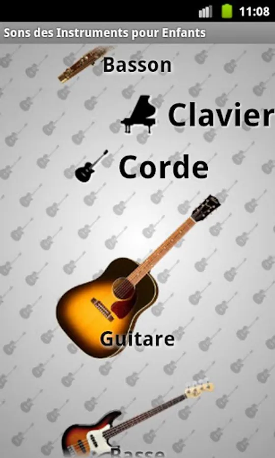 Discover the sound of instruments and learn through images, sounds and words. This application allows to discover instruments through very beautiful pictures and great sounds.